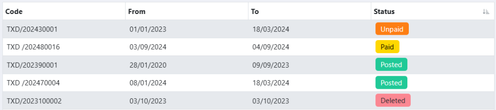 After posting the record, you can click Paid to settle the tax. If you click Unpaid, the tax will remain unpaid and will carry forward to the next report as Balance Brought Forward.
